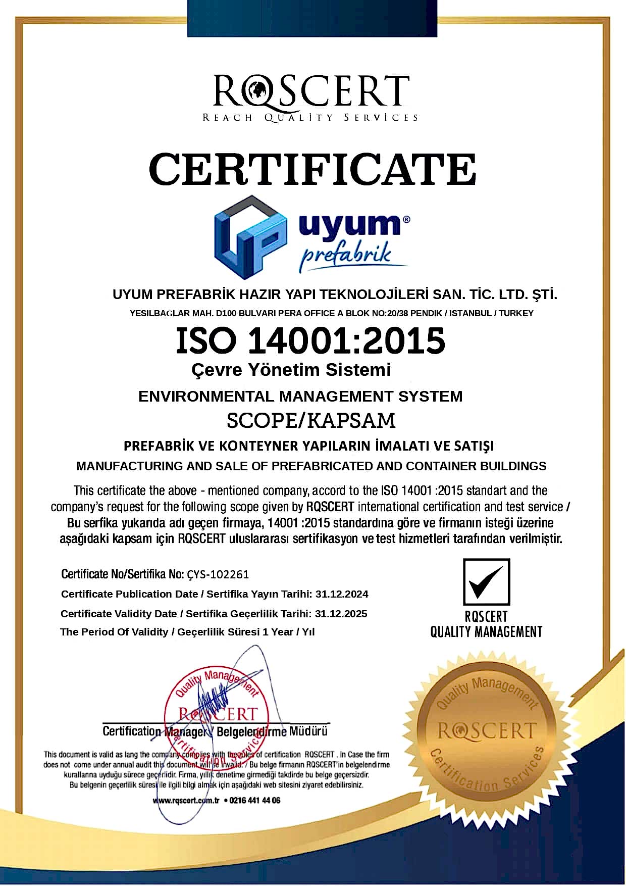 UYUM PREFABRİK, hazır yapı sektöründe kazandığı deneyim ve tecrübesiyle sektörde başarılı projeler gerçekleştirmeyi benimsemiş sektörün iddialı markalarındandır. Çevre dostu ürünler kullanarak, ekolojik çevreye saygılı, yarınlarına sağlıklı yaşanabilir dünya bırakmak adına sorumluluk bilinci taşımaktadır.