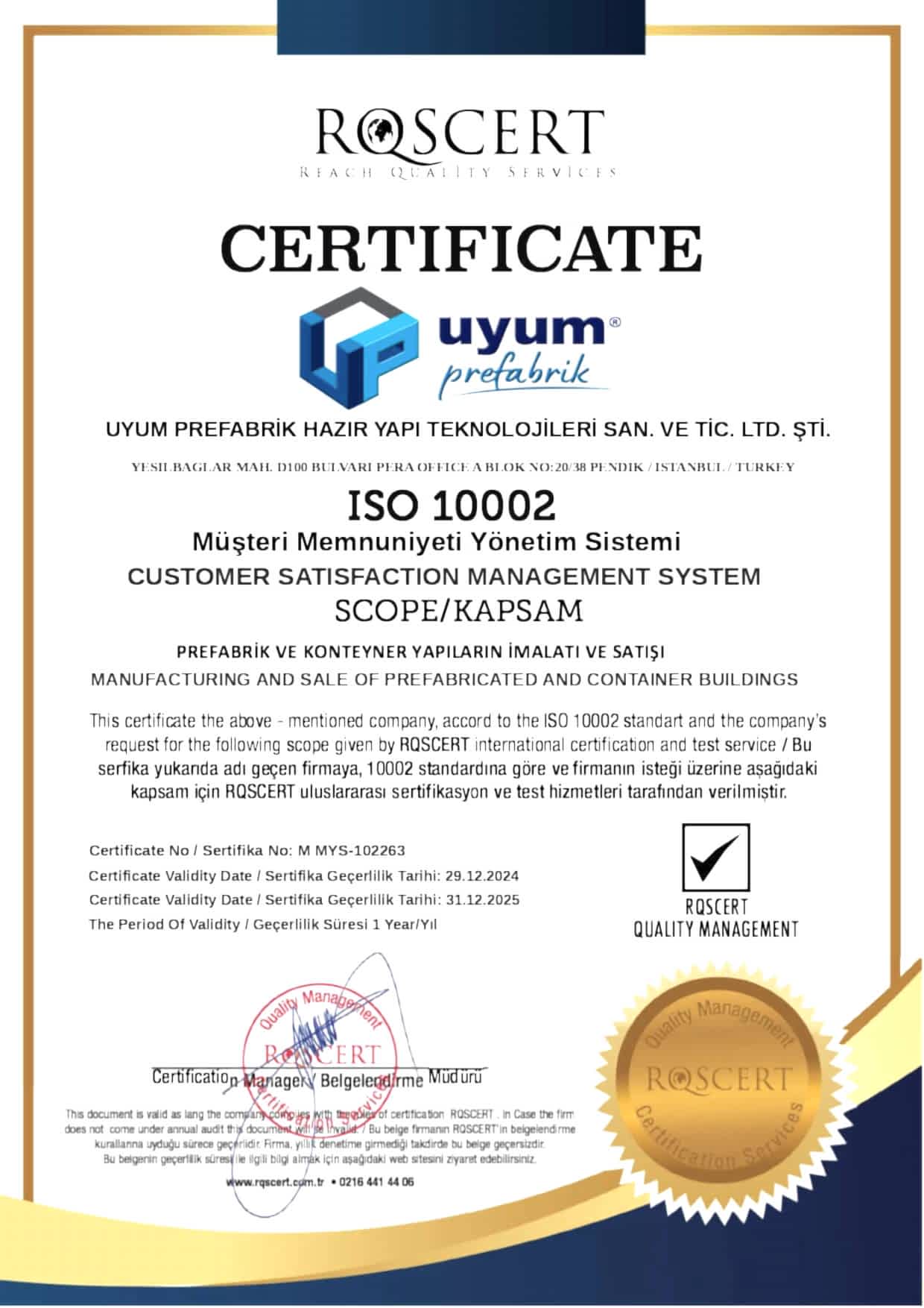 Günümüzde “Kalite” anlayışı bir çok şirkette vazgeçilmez bir değer olarak yerini almış olsa da, UYUM PREFABRİK'de kalite, insan sağlığı ve doğallığın vazgeçilmezi olarak değerlendirilir.